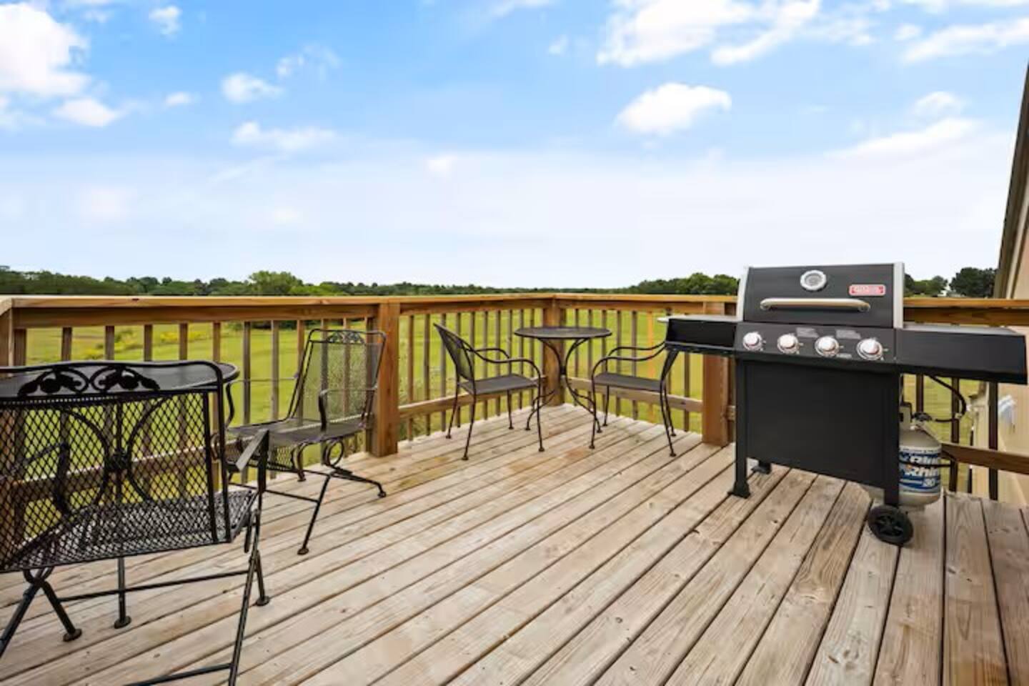 Our barndo loft studio suite is very spacious with a full living quarters. It has it's own temperature control for individual comfort. There is a breathtaking view that overlooks a valley and pond from the deck. It is surrounded by the great outdoors and a few cows and other wild animals that you will see on occasion. More details: * Gated entrance with long private drive: every guest has a unique 4 digit code to enter. * Beds- loft studio has a king bed, sofa bed, & 2 twin folding beds that sleeps 5 max. * 1 Full Bathroom with a tub/shower unit. * Living room/Kitchen/Dining- very spacious with fully stocked kitchen, dining table, coffee bar, 44" smart inch TV. * Laundry area: laundry area in bathroom. * Fire pit- wood provided with a box that has lighter, paper, & roasting sticks. * Back yard- fenced back yard for pets. * Grill- propane grill located by the deck. * Back deck- deck is located out the back with beautiful views.