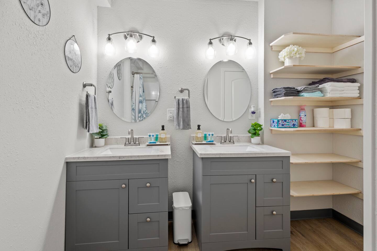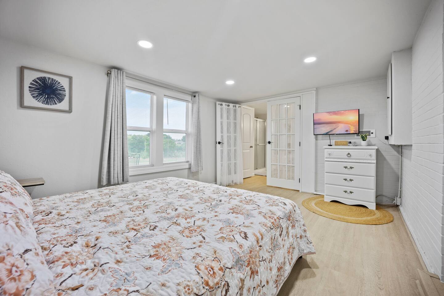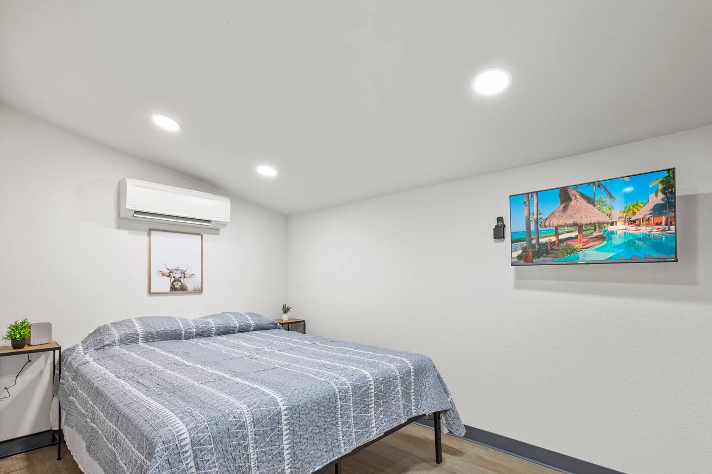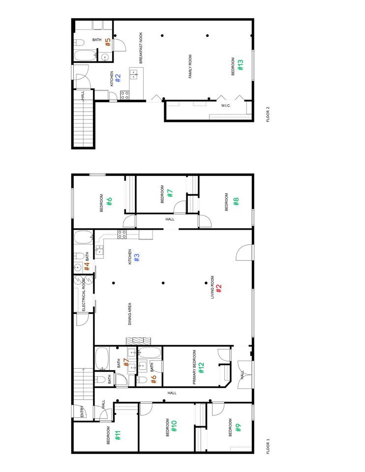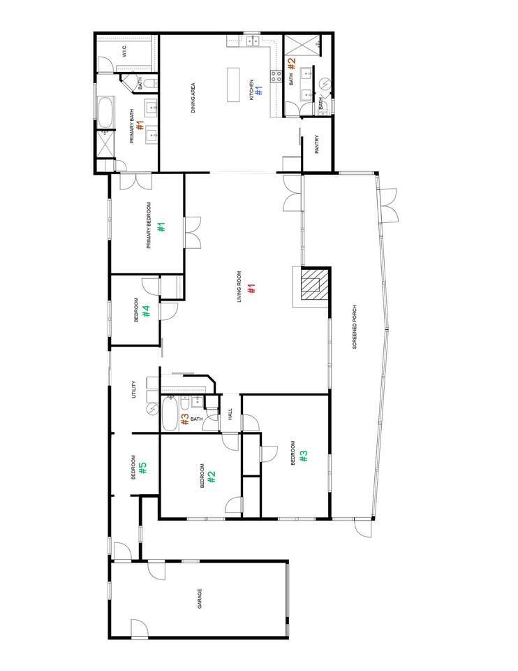 HOUSE DESCRIPTION: The house is a 5 bedroom 3 full bathroom ranch style home that will sleep 15 max. It has a very spacious living room that will host lots of people. It also has a fenced-in backyard for approved pets along with lots of outside space for fun activities. More house details: * Gated entrance with long private drive: every guest has a unique 4 digit code to enter. * Parking: lots of parking in front of the garage or along the drive in front of the house. * BR 1- king bed, 32" smart TV, attached to full bath with jacuzzi and walk-in closet. Sleeps 2 max. * BR 2- queen bed with 32" smart TV. Sleeps 2 max. * BR 3- 3 full beds & 32" smart TV. Sleeps 6 max. * BR 4- 1 full bed. Sleeps 2 max. * BR 5- 1 queen bed. Sleeps 2 max. * Living room- very spacious at about 1000 sqft with a sofa sleeper, 86" smart LG TV. Sleeps 1 max. * Kitchen- fully stocked for cooking needs, walk-in pantry, full bath connected, & coffee bar. * Back porch- laundry area which connects to the back patio. * Garage- one car is available which is connected to the house. * Front porch- screened in with seating and a swing to view a beautiful sunrise. * Fire pit- wood provided with a box that has lighter, paper, & roasting sticks. * Back patio- propane grill with fenced-in backyard. BARNDO DESCRIPTION: The barndo has 7 bedrooms on the main level with a loft studio suite on the upper that counts as the 8th bedroom that sleeps 25 max. The loft studio suite is a full living quarters with a kitchen, bath, laundry, with a deck out the back and a fenced in backyard for approved pets. The lower level has 3 full bathrooms along with a spacious gathering area. More barndo details: * Gated entrance with long private drive: every guest has a unique 4 digit code to enter. * Parking: lots of parking on the North, West, & South side. * BR 1- king bed, 32" smart TV, & attached full bath. Sleeps 2 max. * BR 2- queen bed with 32" smart TV. Sleeps 2 max. * BR 3- 2 full beds with 32" smart TV. Sleeps 4 max. * BR 4- 2 full beds with 32" smart TV. Sleeps 4 max. * BR 5- 1 king bed with 32" smart TV. Sleeps 2 max. * BR 6- 1 queen bed with 32" smart TV. Sleeps 2 max. * BR 7- 2 full beds with 32" smart TV. Sleeps 4 max. * BR 8- loft studio suite with king bed, sofa sleeper, & 2 twin folding beds with 44" smart TV. Sleeps 5 max. * Bedroom soundproofing- all interior walls insulated with solid core doors for bedroom privacy. * Heating/Cooling- all rooms have their own heating/cooling head to control temp to your liking. * Living room/Kitchen/Dining- very spacious at about 850 sq ft with fully stocked kitchen, dining table that seats 12, coffee bar, couches, & 70" smart Vizio TV. * Laundry area: laundry area is in the upper loft bath. * Fire pit- wood provided with a box that has lighter, paper, & roasting sticks. Also has 3 picnic tables. * Back yard- fenced back yard for pets. * Grill- propane grill located by the firepit and upper deck. * Back deck- deck is located off the loft with beautiful views.