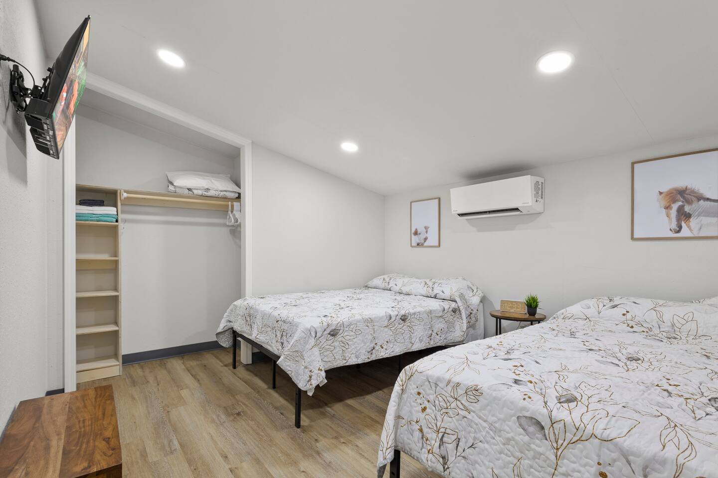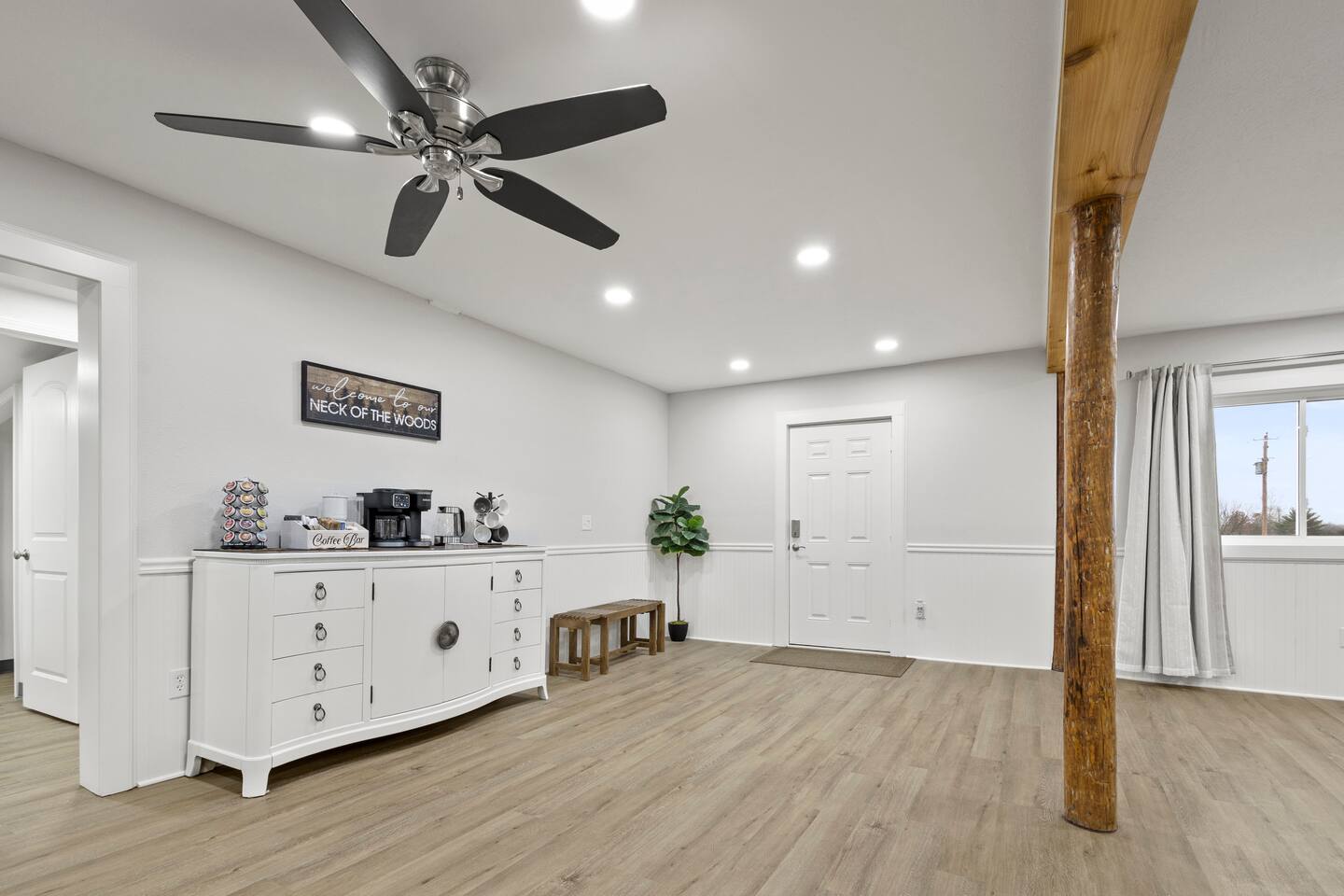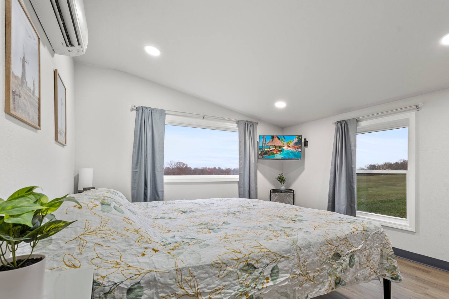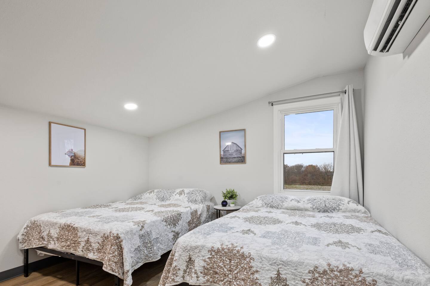 Our barndo is newly renovated from floor to ceiling with about 3,300 sqare foot of living area. It has a very spacious gathering area on the lower level that is a kitchen/dining/living room all in one. The loft studio is also very spacious with a full living quarters. Each room has it's own temperature control for individual comfort. It has a breathtaking view that overlooks a valley and pond. It is surrounded by the great outdoors and a few cows and other wild animals that you will see on occasion. More details: * Gated entrance with long private drive: every guest has a uniqued 4 digit code to enter. * Parking: lots of parking on the North, West, & South side of barndo. * BR 1- king bed, TV, attached to full bath. Sleeps 2 max. * BR 2- queen bed with TV. Sleeps 2 max. * BR 3- 2 full beds with TV. Sleeps 4 max. * BR 4- 2 full beds with TV. Sleeps 4 max. * BR 5- 1 king bed with TV. Sleeps 2 max. * BR 6- 1 queen bed with TV. Sleeps 2 max. * BR 7- 2 full beds with TV. Sleeps 4 max. * BR 8- loft studio with king bed, sofa bed, & 2 twin folding beds with TV. Sleeps 5 max. * 4 Full Bathrooms- locations are in the loft, off the lower kitchen, connected to bedroom, and hall bath. * Living room/Kitchen/Dining- very spacious with fully stocked kitchen, dining table, coffee bar, couches, & 70 inch TV. * Laundry area: laundry area is in the upper loft bath. * Fire pit- wood provided with a box that has lighter, paper, & roasting sticks. * Back yard- fenced back yard for pets. * Grill- propane grill located by the firepit. * Back deck- deck is located off the loft with beautiful views.